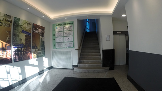 Unsere helle, freundliche Praxis befindet sich in der 4. Etage. Über einen Fahrstuhl können uns auch behinderte Menschen ohne Probleme erreichen.